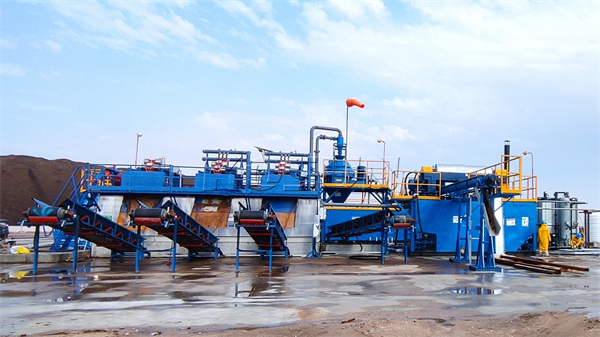 大型含油污泥處理系統主要由預處理模塊,油砂分離模塊,篩分模塊,油水分離等模塊組成,目的是為了解決在鉆井過程中產生的廢油泥處理,系統處理量為30t/h,處理后固相含油率可以達到<3%。